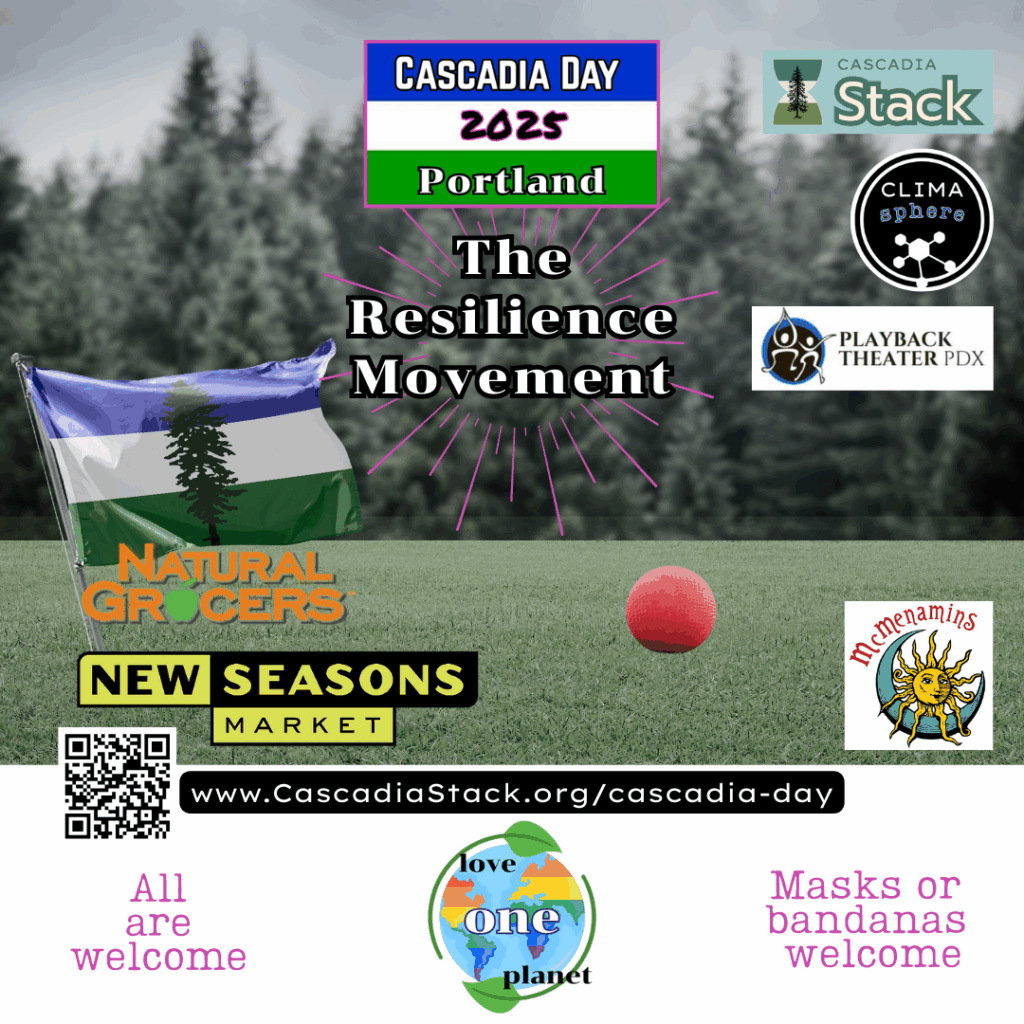 Join for a chill gathering in NE PDX / Alberta Park. Let’s talk about building community resilience through a bioregional lens. What will it look like for the next generation of Cascadians? The Resilience Movement is about co-creating a sustainable and regenerative PNW, while building a clean energy economy. We do not pretend to know the answers, but others are working on it. Let’s connect on Cascadia Day!