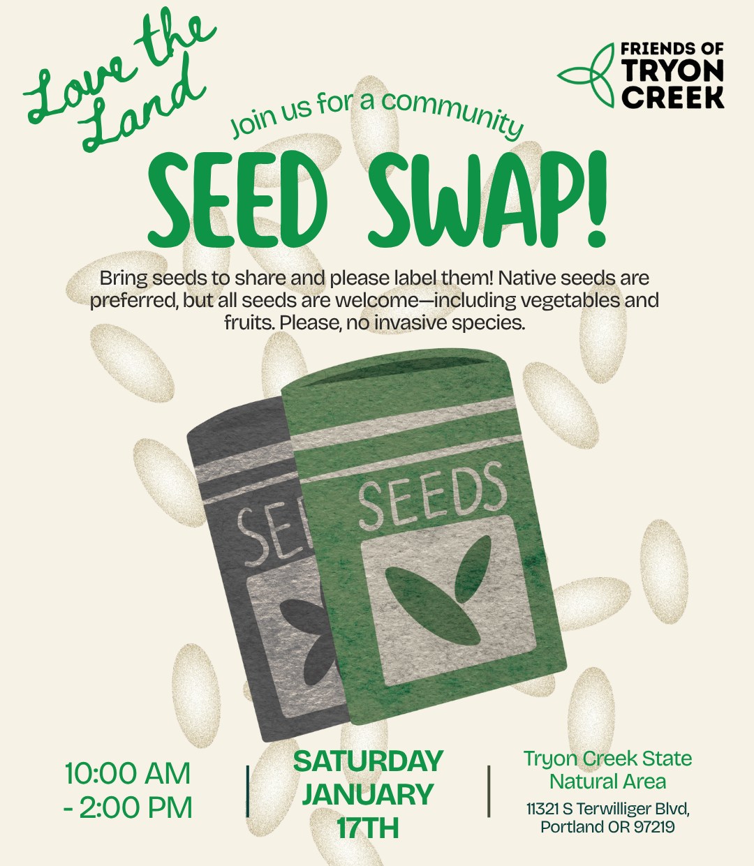 Bring your favorite seeds to trade and be sure to label them. Native seeds are encouraged, but all are welcome—including fruits and vegetables. Please, no invasive species.