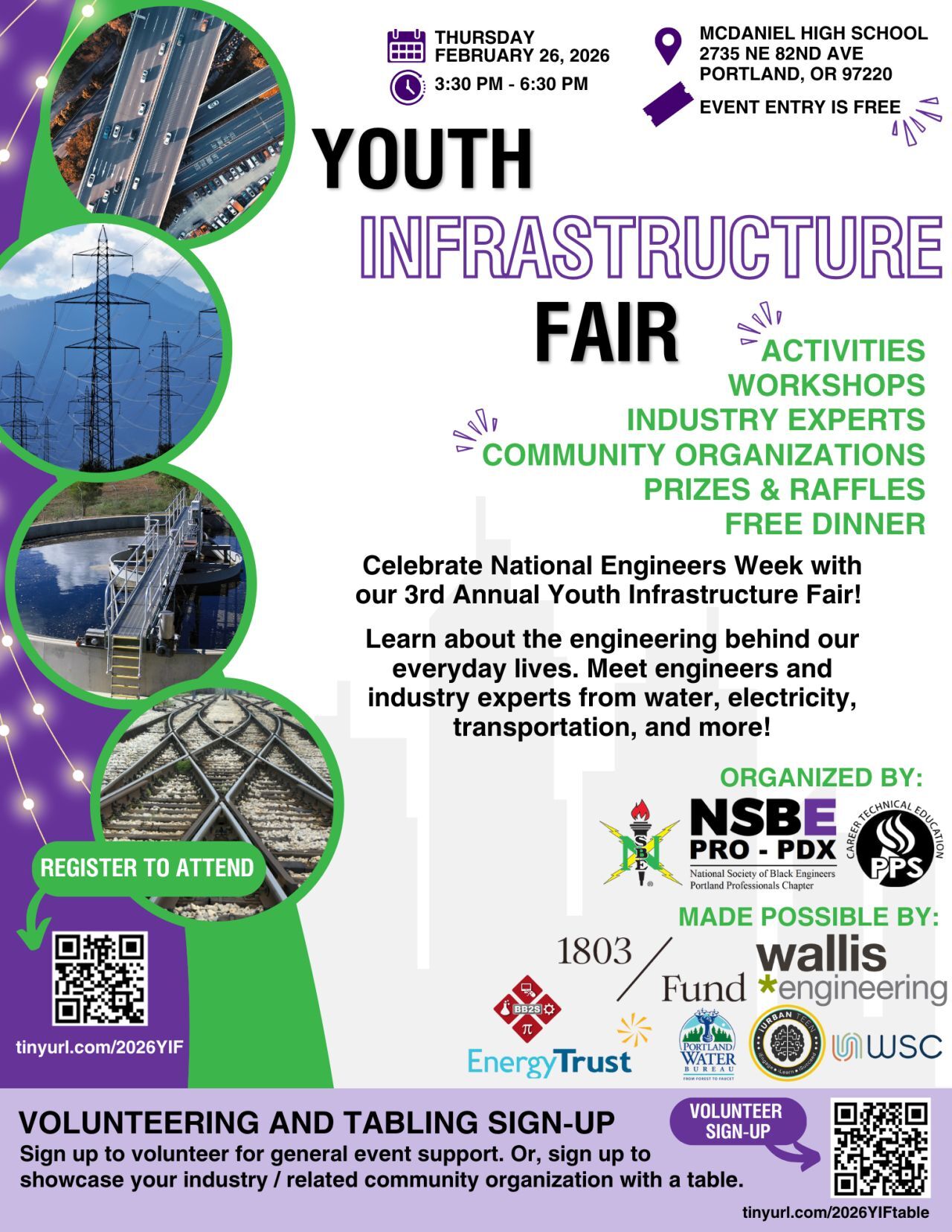 We are excited to host our third annual Youth Infrastructure Fair! This event aims to celebrate National Engineers Week and Black History Month while showcasing the engineering/industry careers that help sustain a thriving city.